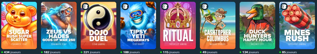 Notre priorité, c’est la navigation : filtres par type de jeu, recherche rapide, accès direct aux éditeurs, et une interface qui évite la surcharge. Résultat : vous passez moins de temps à chercher, plus de temps à jouer. Pour beaucoup de joueurs, c’est un vrai plus quand ils comparent différents casinos ou quand ils lisent un stake avis avant de se lancer.